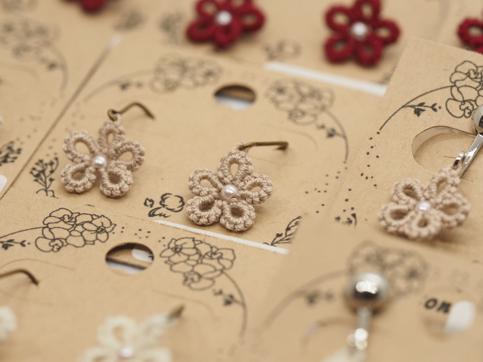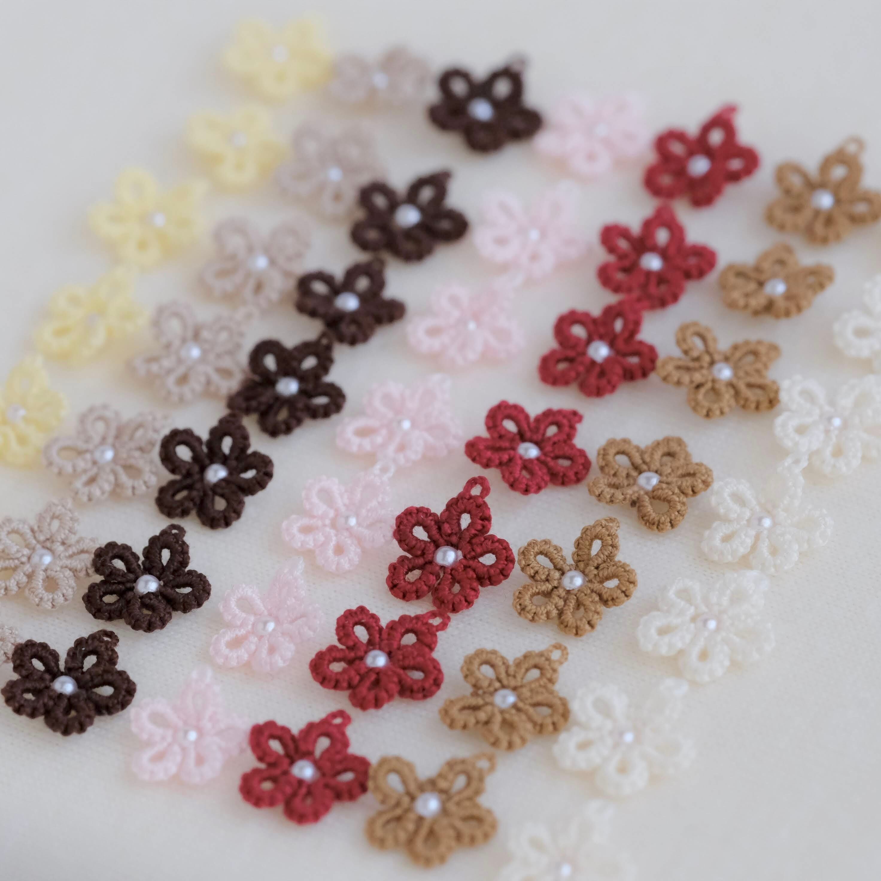 ・中心のパールビーズは、お花のレースパーツに編み込まれており、接着剤不使用